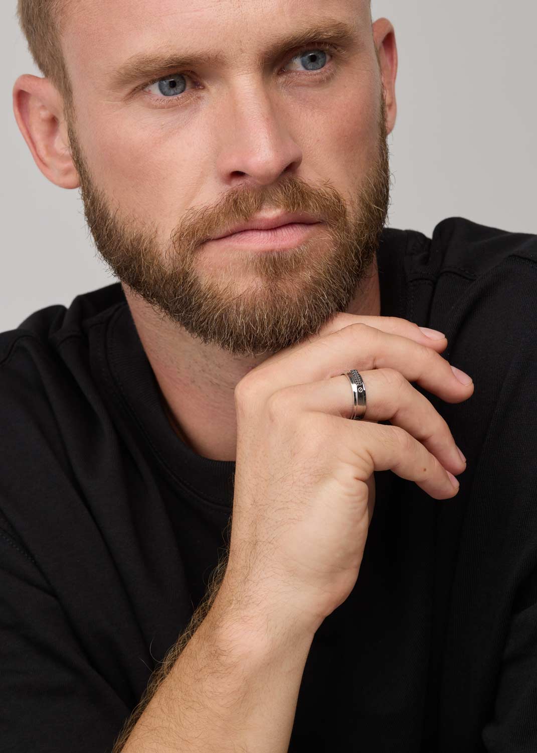 Фото «Мужское кольцо из белого золота Алькор 16494-213 с черными бриллиантами»