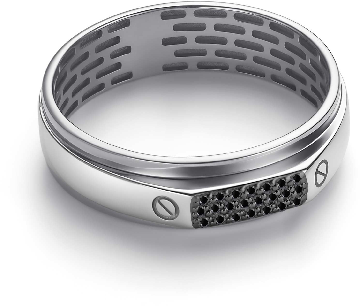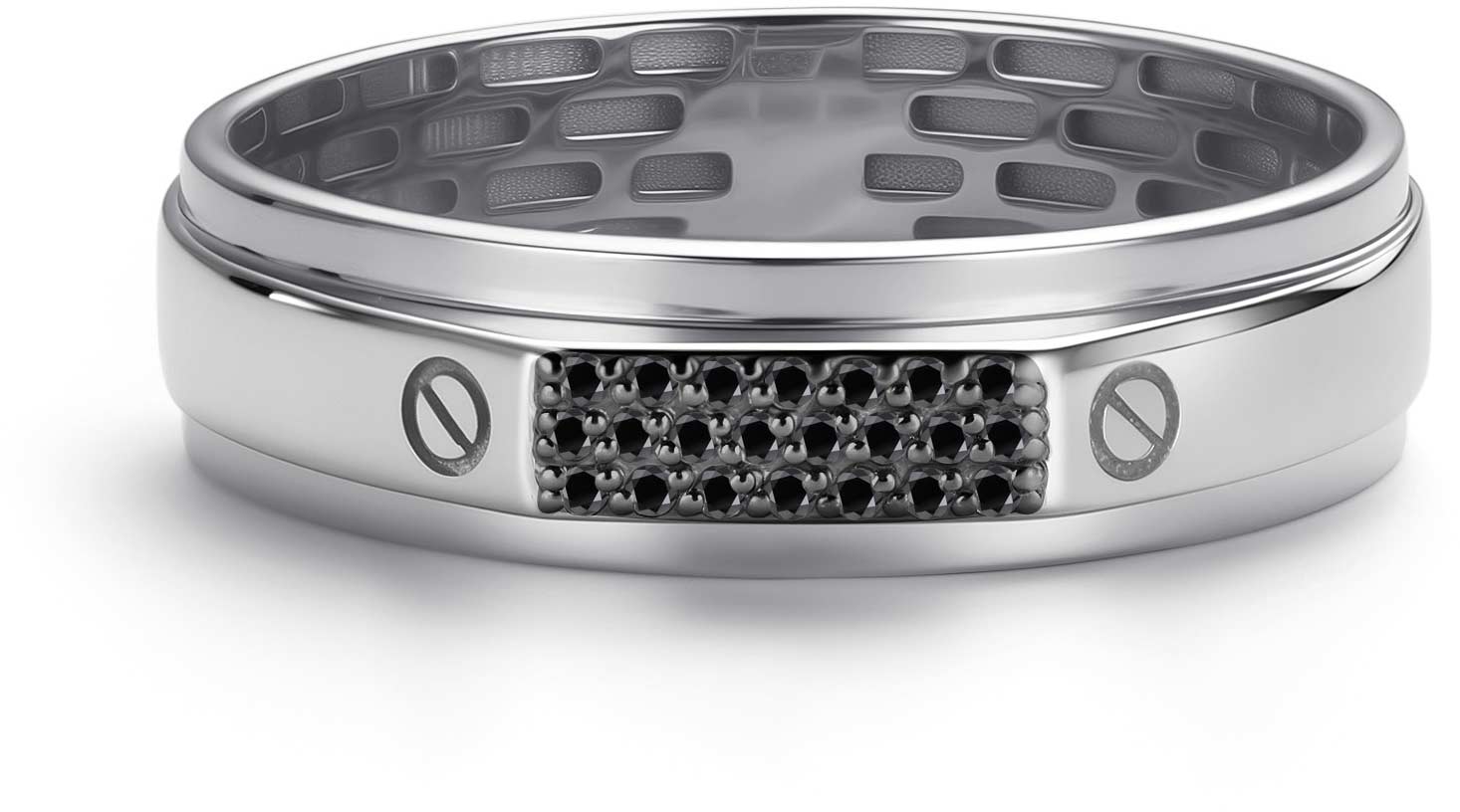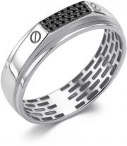 Мужское кольцо из белого золота Алькор 16494-213 с черными бриллиантами