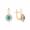 Золотые серьги Алькор 23102-101 c бриллиантом, изумрудом