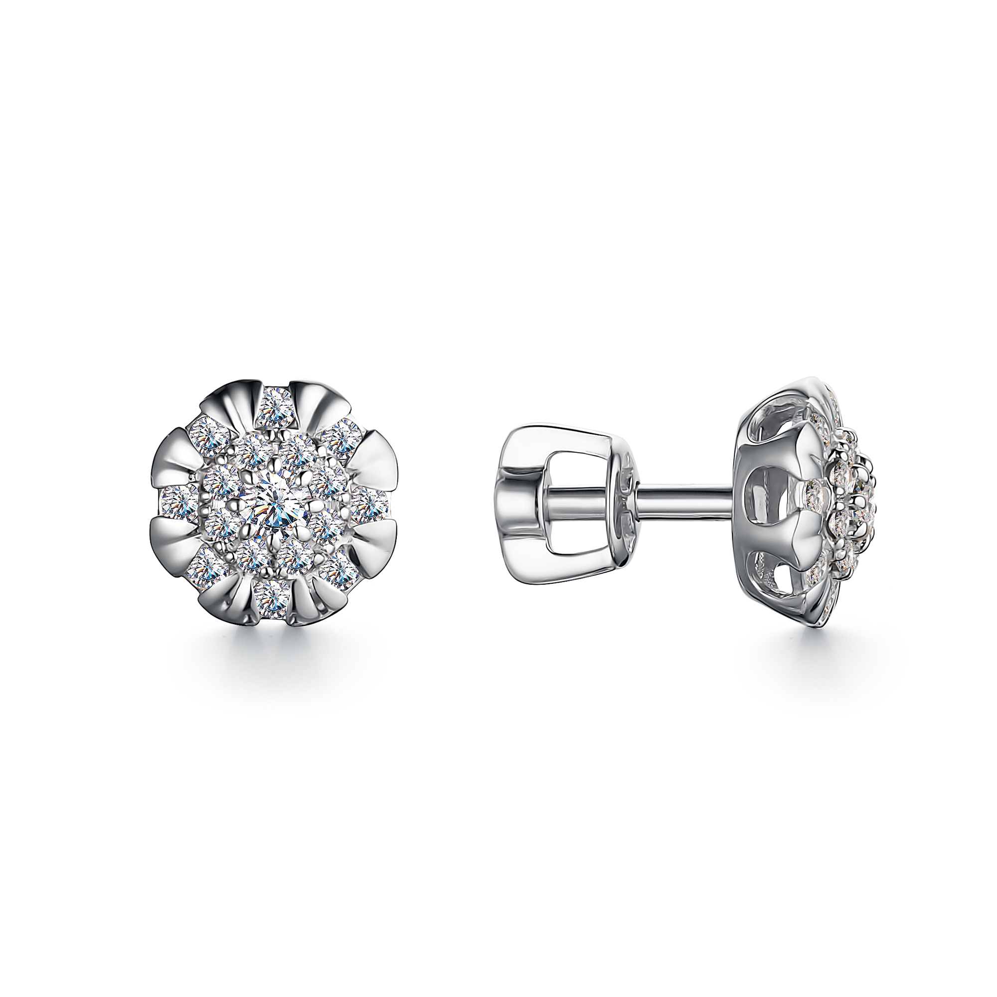 Фото «Серьги пусеты-гвоздики из белого золота Алькор 24413-200 с бриллиантами»