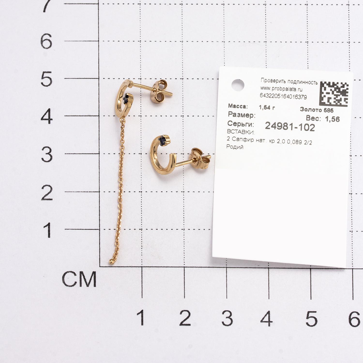 Фото «Золотые серьги пусеты круглые Алькор 24981-102 с сапфирами»
