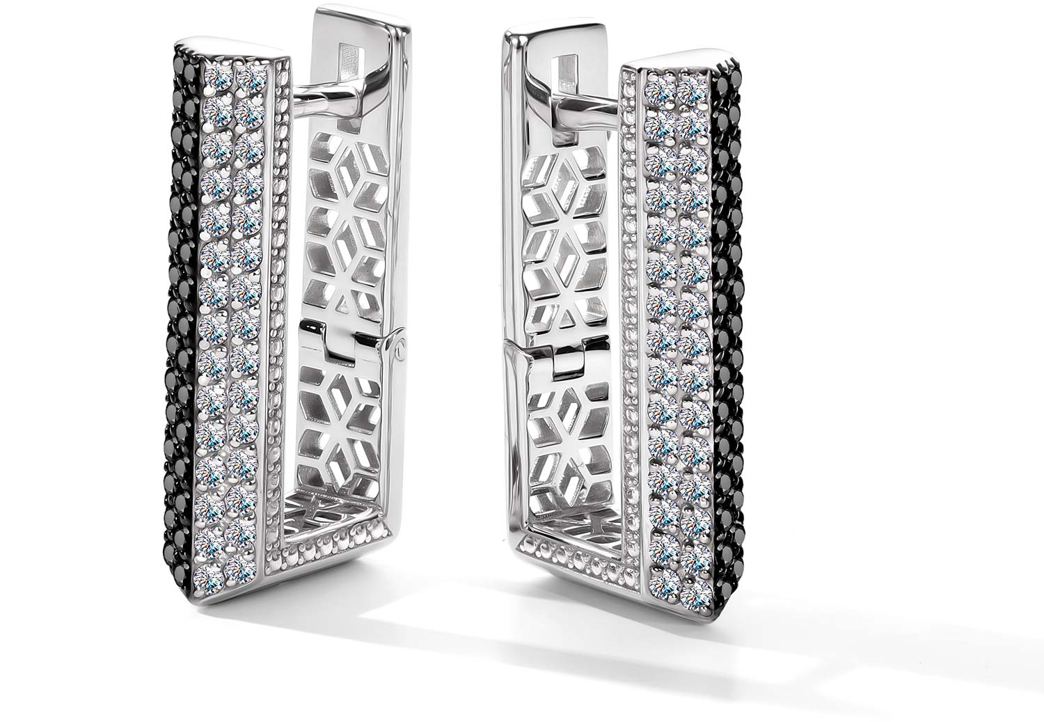 Фото «Серьги из белого золота Алькор 25842-213 с черными бриллиантами, бриллиантами»
