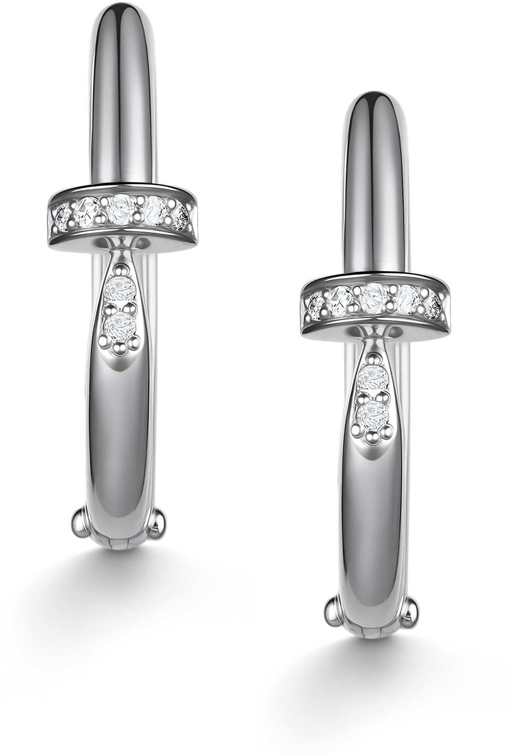 Серьги кольца конго из белого золота ''Гвоздь'' Алькор 25985-200 с бриллиантами