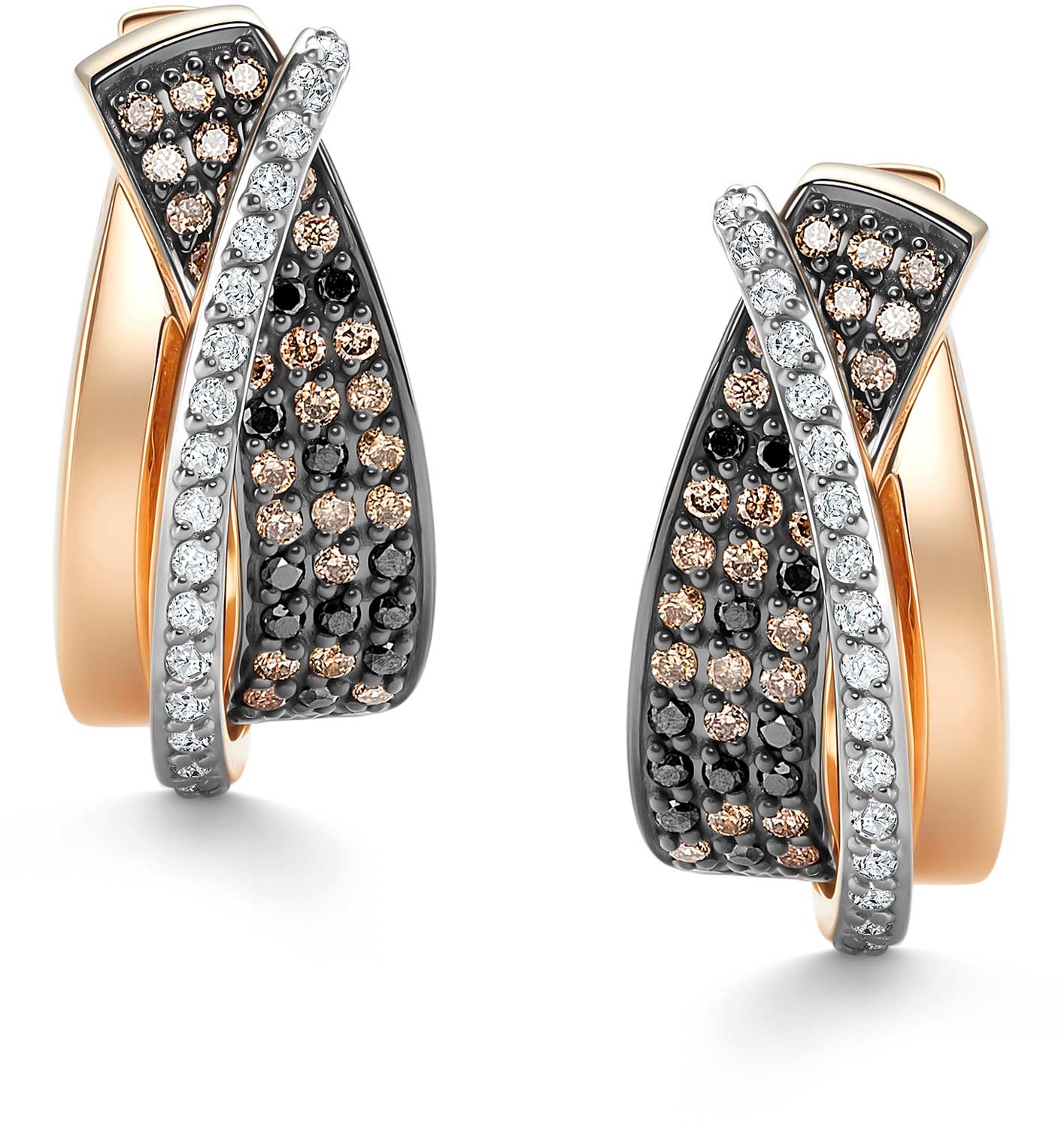 Золотые серьги Алькор 26086-118 с черными бриллиантами, коньячными бриллиантами, бриллиантами