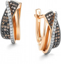 Фото «Золотые серьги Алькор 26086-118 с черными бриллиантами, коньячными бриллиантами, бриллиантами»