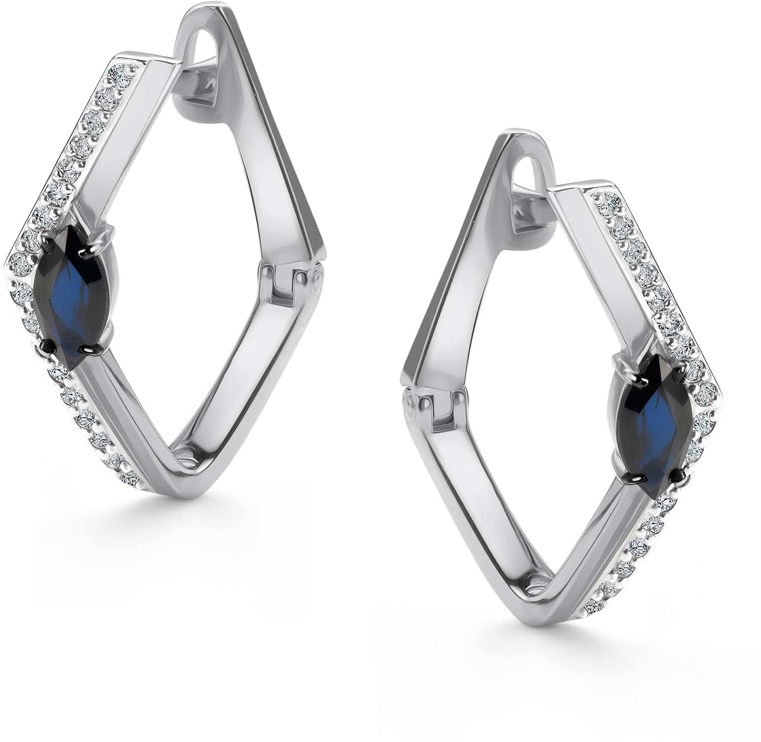 Серьги из белого золота Алькор 26090-202 с сапфирами, бриллиантами