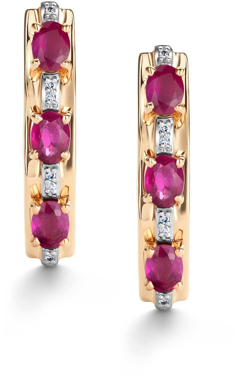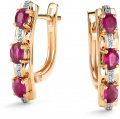 Золотые серьги Алькор 26456-103 c бриллиантом, рубином