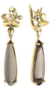 Фото «Золотые серьги с подвесками АПАРТ 83022178-1 с дымчатым кварцем, бриллиантами»