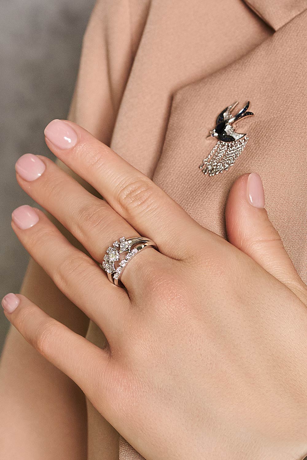 Фото «Кольцо из белого золота Арт-Модерн 010480-B с бриллиантами»