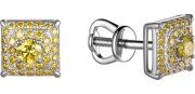 Серьги пусеты-гвоздики из белого золота Bellissima Tentazione S/1018-240/3 c желтыми бриллиантами