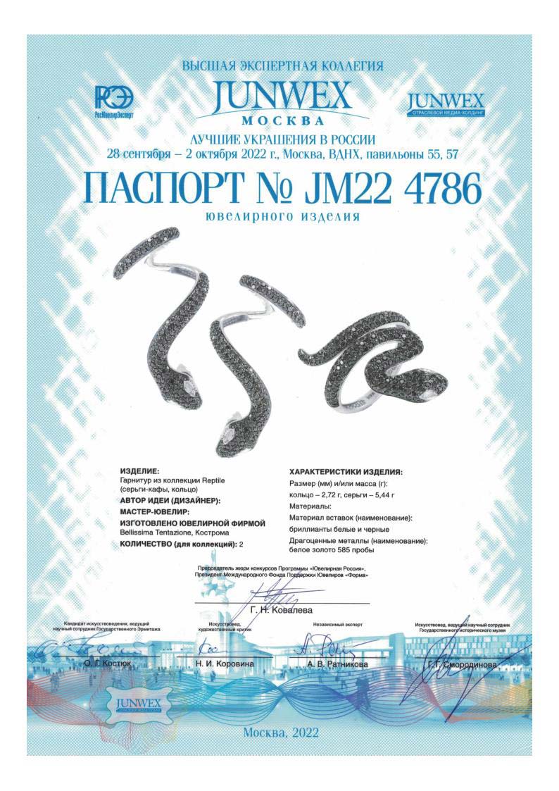 Фото «Серьги из белого золота ''Змеи'' Bellissima Tentazione S2/552-203/5 с изумрудами, черными бриллиантами»