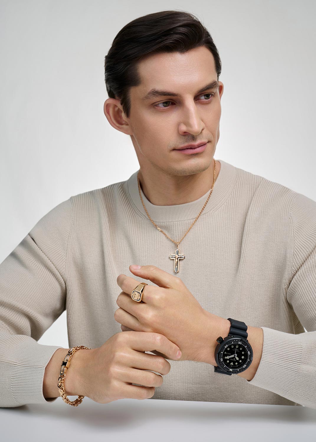 Фото «Мужской золотой православный крестик с распятием BERGER 080042. с ониксом»