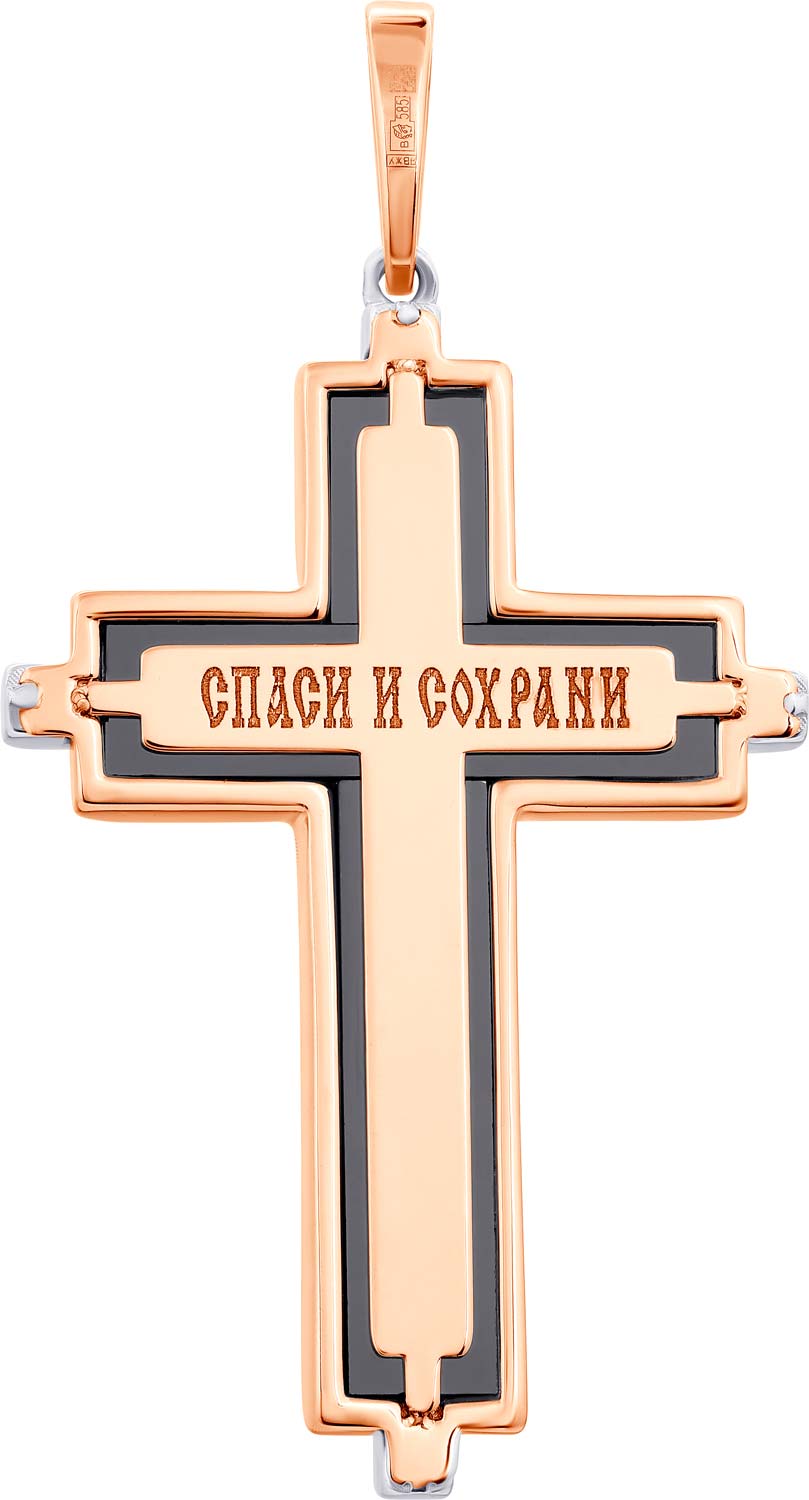 Мужской золотой православный крестик с распятием BERGER 080042. с ониксом