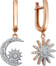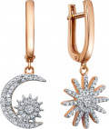 Золотые серьги с подвесками ''Солнце и луна'' BERGER 120359 с фианитами