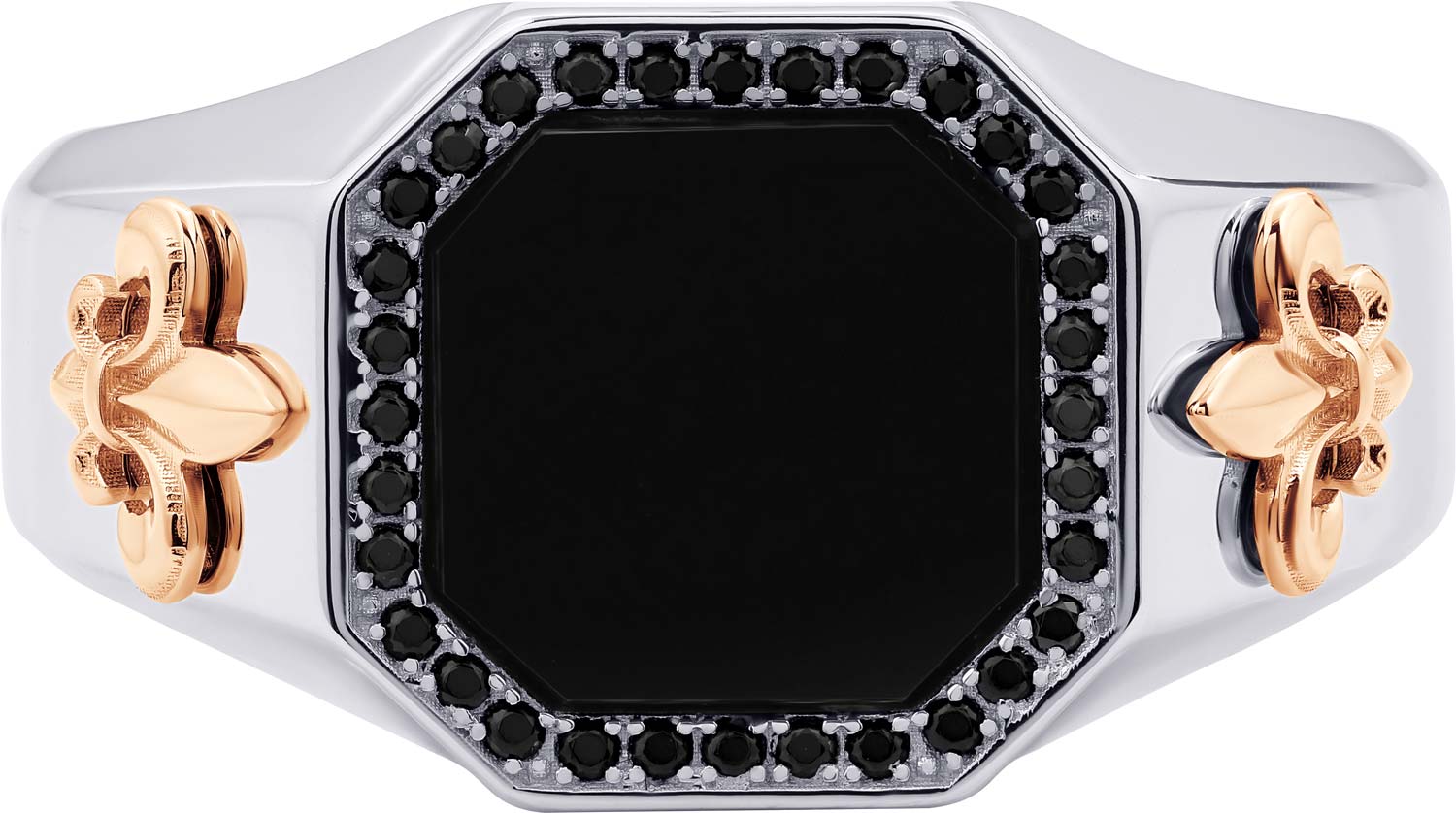 Фото «Мужская золотая печатка перстень ''Геральдическая лилия'' BERGER B040043-CH с ониксом, фианитами»