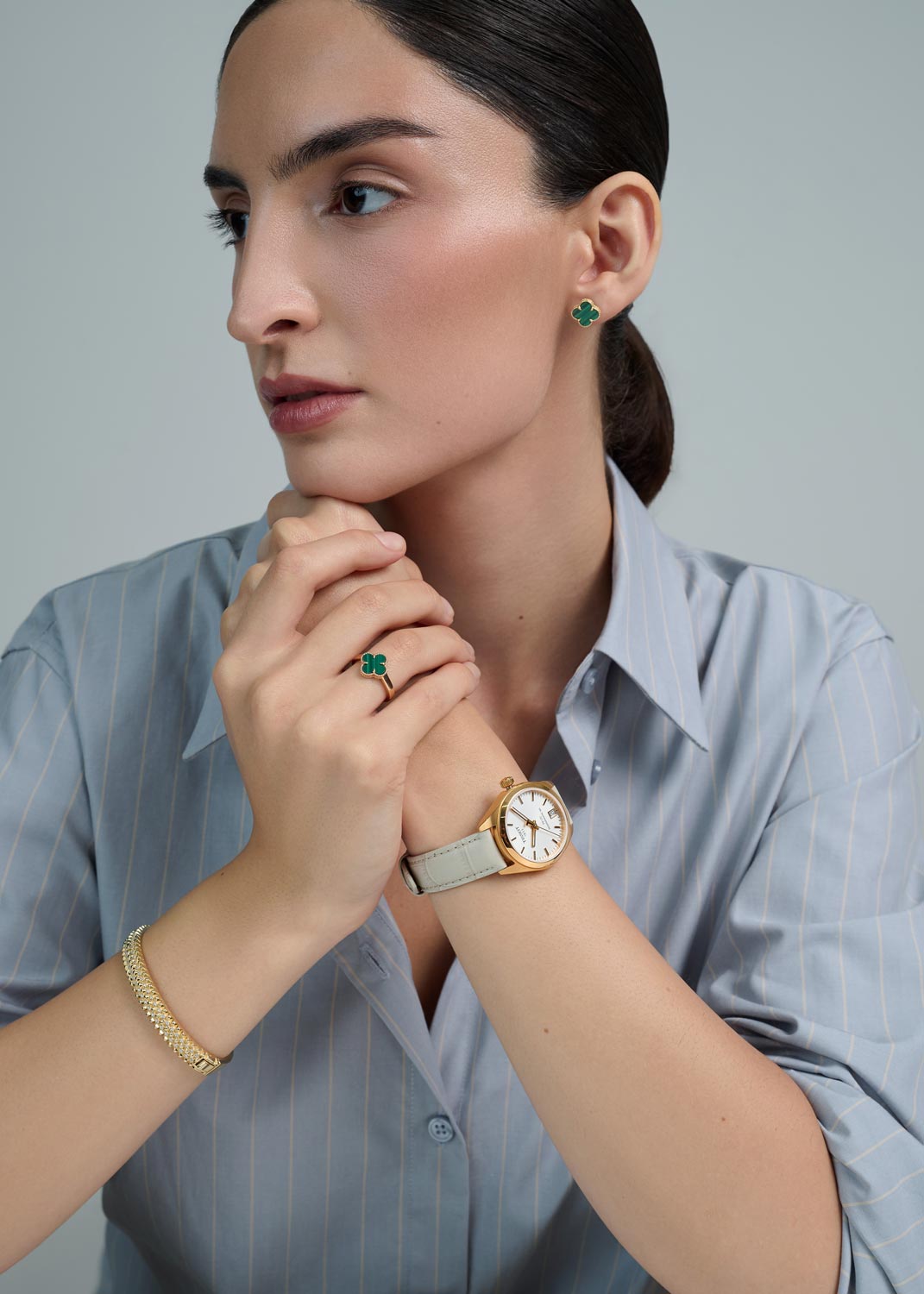Фото «Золотые серьги пусеты-гвоздики BERGER L050110-M с малахитом»