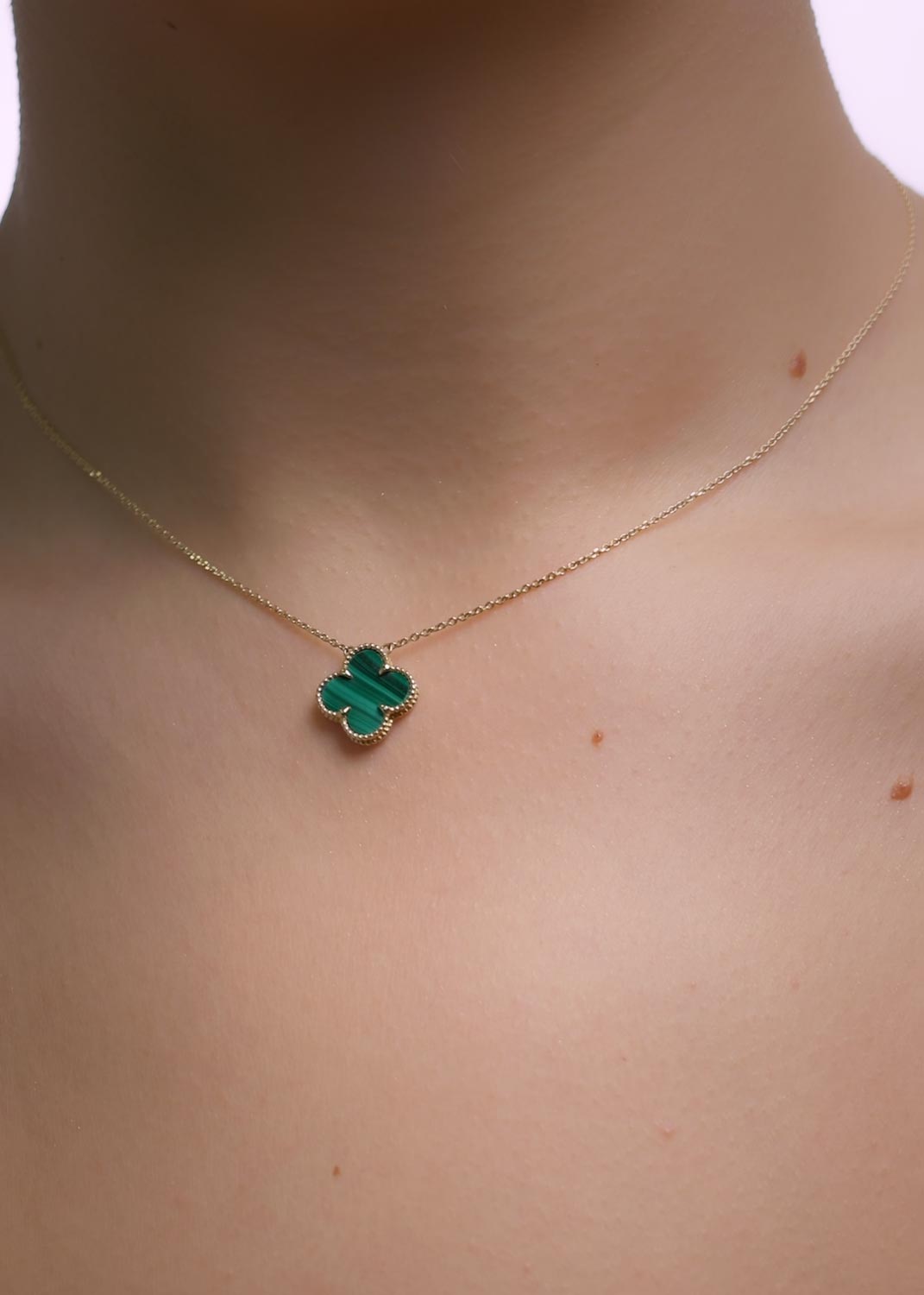 Золотая подвеска на цепочке L770019-M с малахитом, фианитами