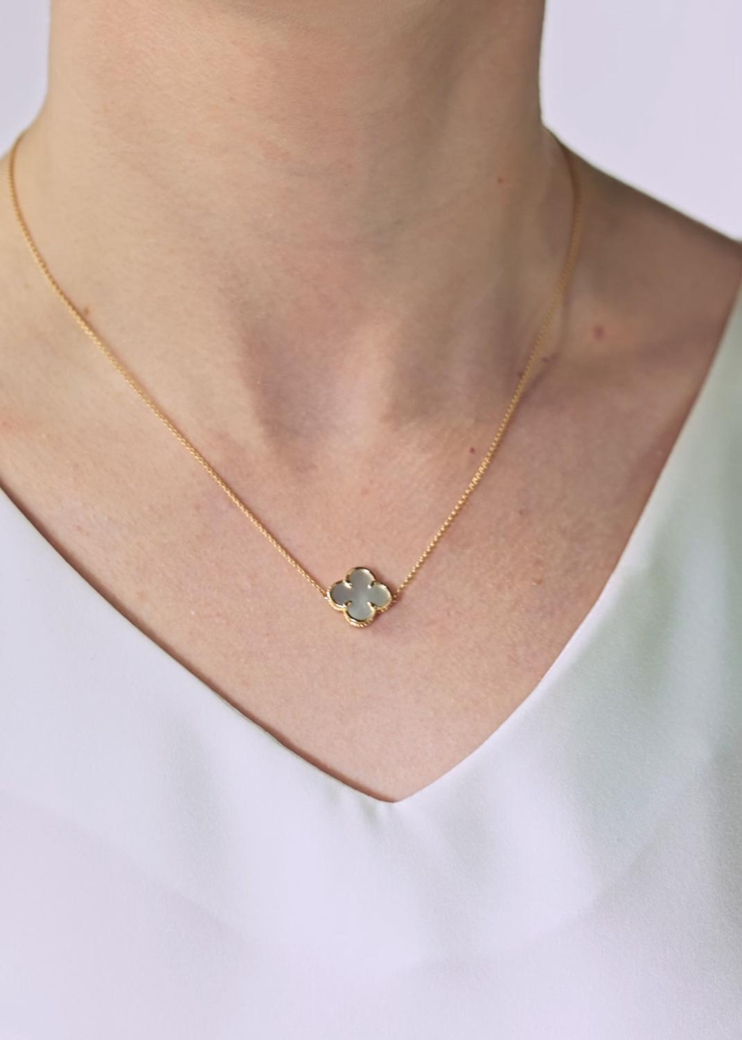 Фото «Золотая подвеска на цепочке L770019-P с перламутром, фианитами»