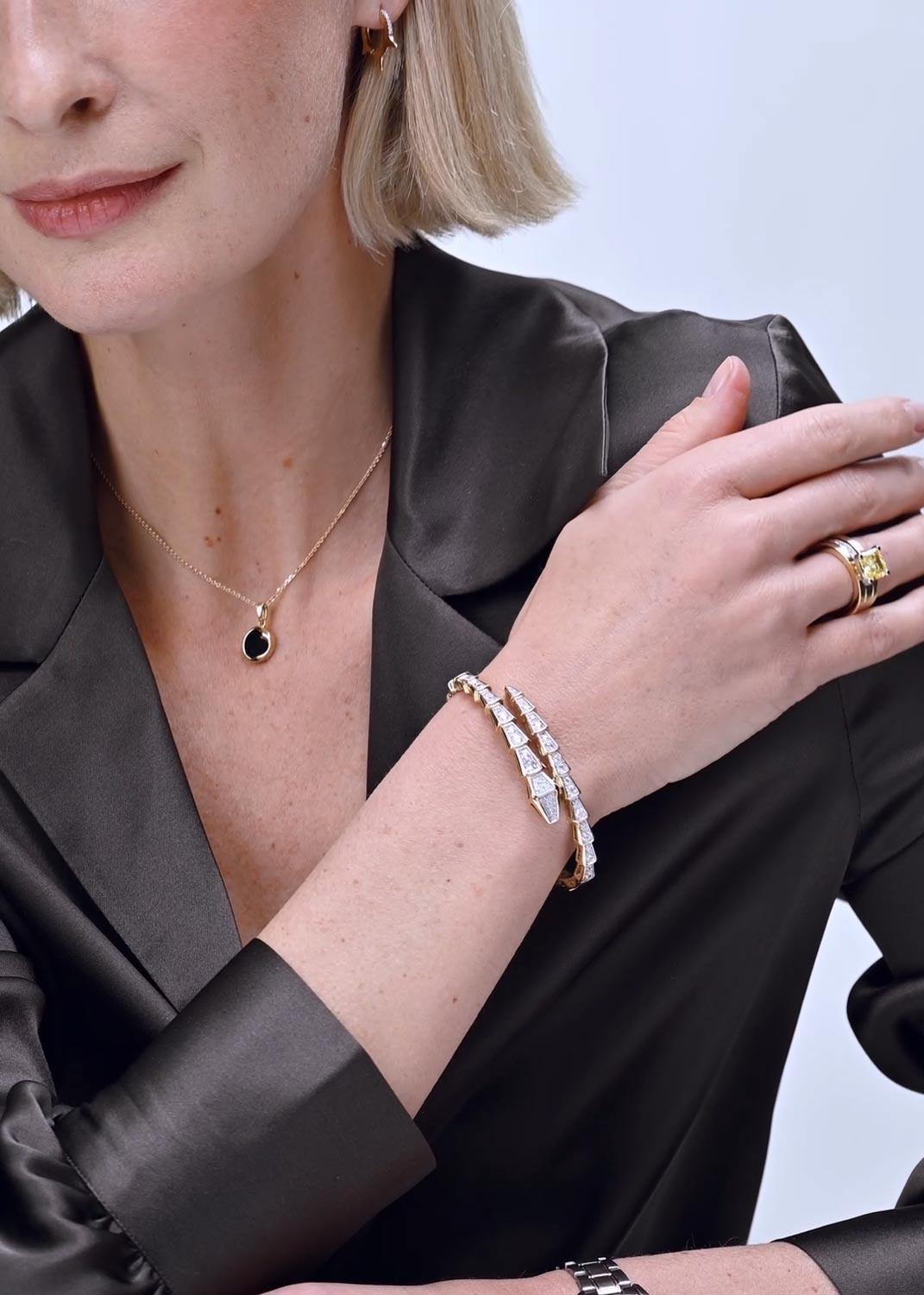 - нержавеющая сталь с золотым покрытием, эмаль, фианит