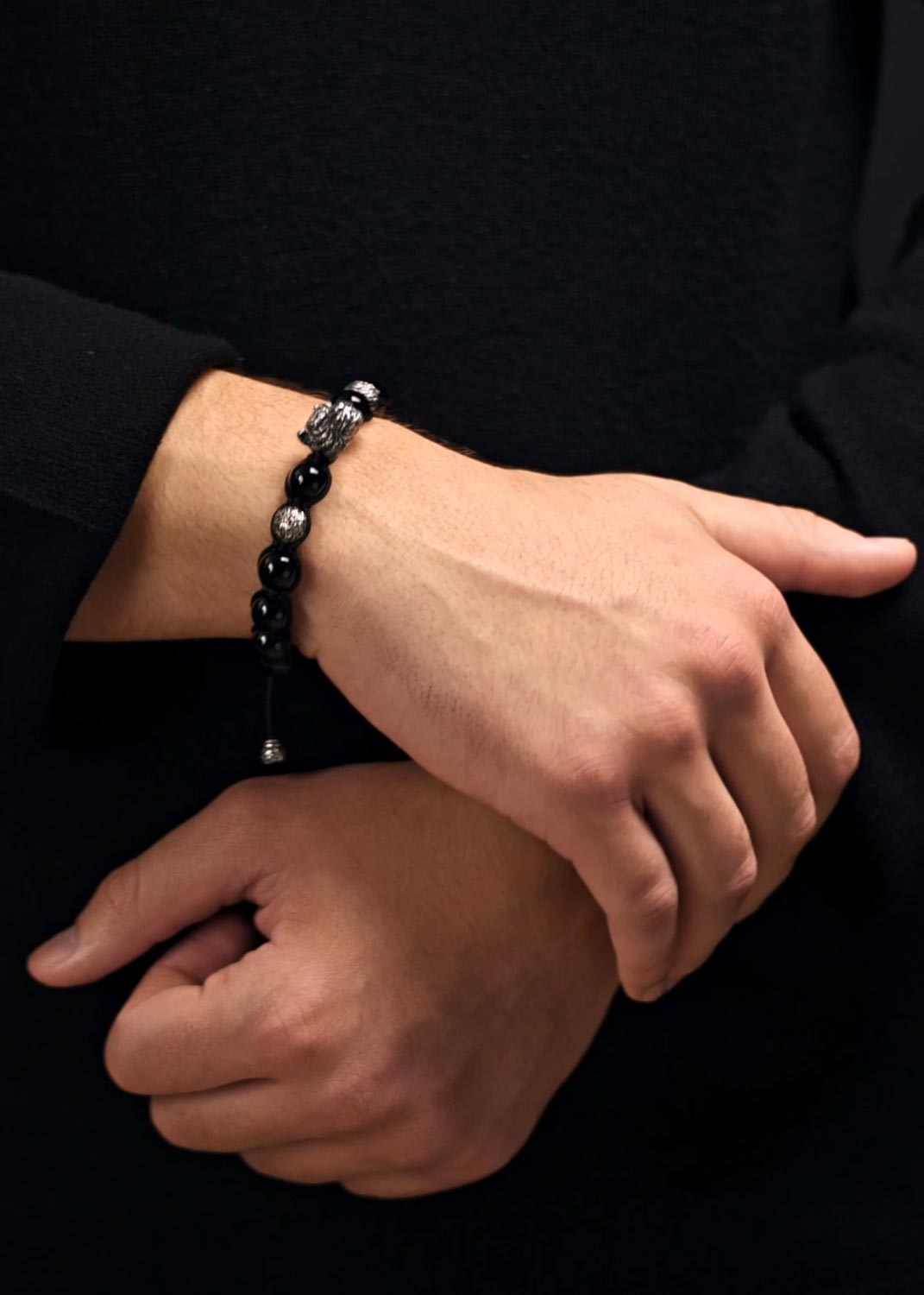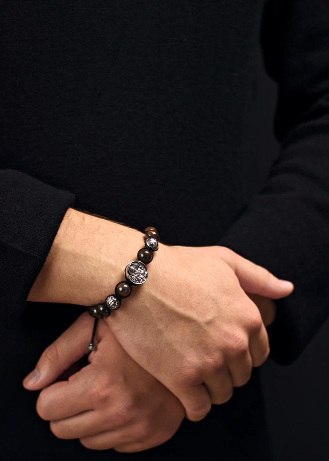 - текстильный шнурок (ткань), серебро, агат, тигровый глаз, вес: 16,91г.