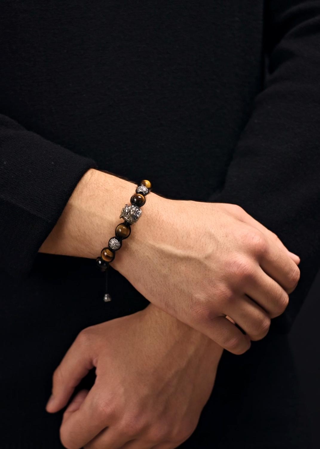 - текстильный шнурок (ткань), серебро, тигровый глаз, вес: 6,11г.