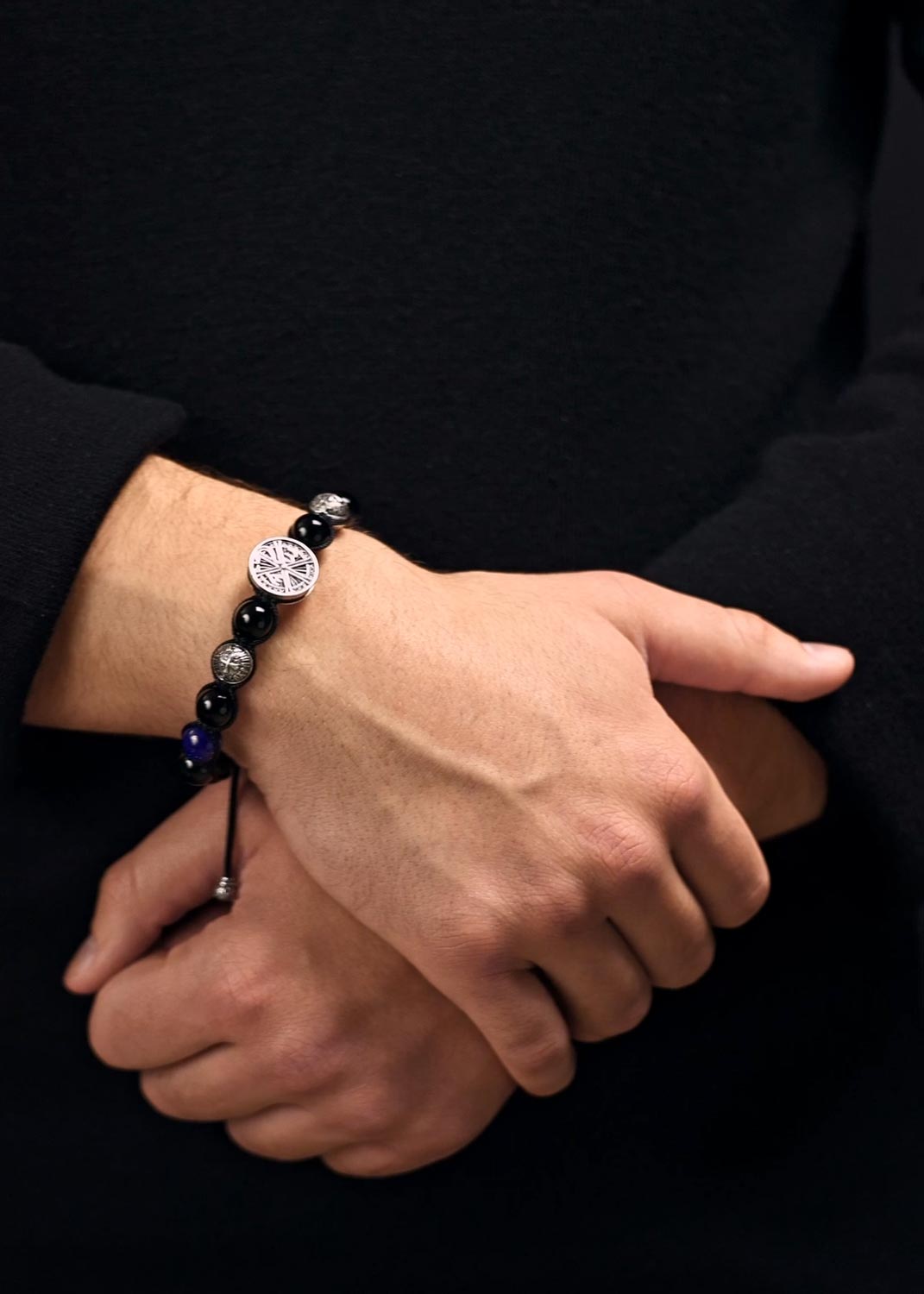 - текстильный шнурок (ткань), серебро, агат, лазурит, вес: 14,55г.