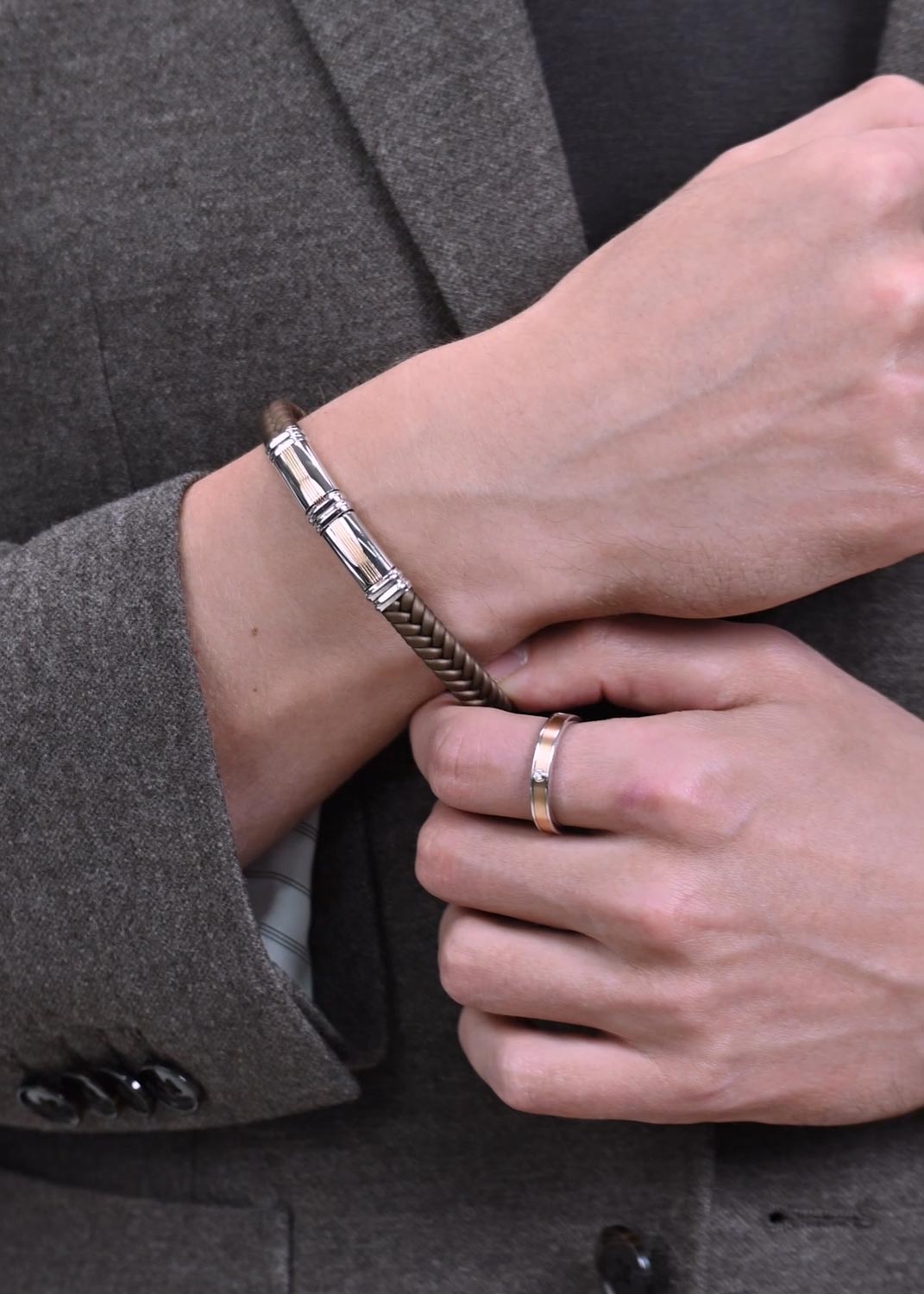 - серебро, розовое золото, каучук, вес: 12,75г.