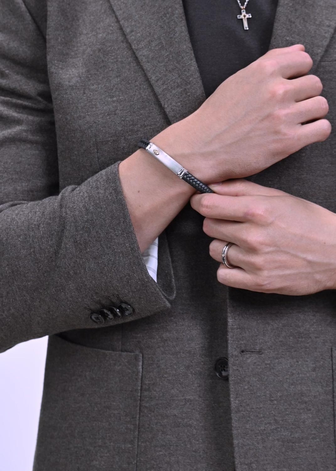 - серебро, розовое золото, кевлар, сталь, шпинель, вес: 10,61г.