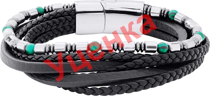 - кожа натуральная, сталь, малахит, вес: 26,23г.