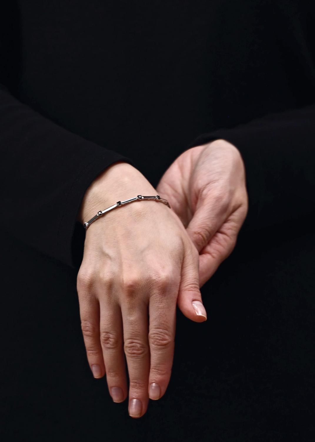 Такие украшения легко вписываются как в повседневный стиль, так и в вечерний ансамбль. Изысканный тонкий браслет из белого золота можно носить отдельно для минималистичного эффекта или сочетать с другими браслетами, создавая уникальные сеты. Его невесомость и деликатность дарят комфорт — идеальный выбор для тех, кто ценит утонченность.