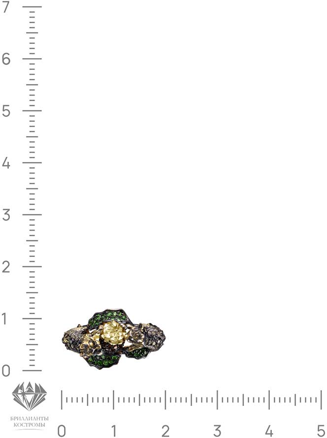 - тсаворит - 19шт. - 0,21К, тсаворит - 28шт. - 0,18К, бриллиант черный в 57 граней - 24шт. - 0,146К, чистота камня 7/6А (цвет, качество), бриллиант коньячный в 57 граней - 8шт. - 0,043К, чистота камня 7/7А (цвет, качество), бриллиант коньячный в 57 граней - 27шт. - 0,127К, чистота камня 7/6А (цвет, качество)
