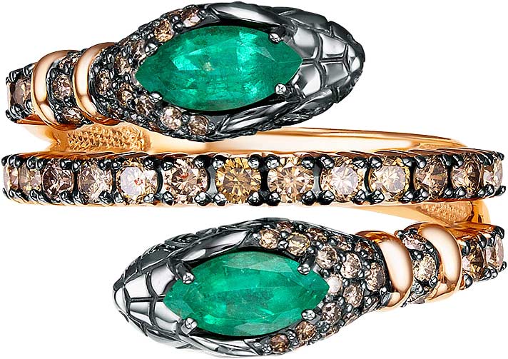 Золотое кольцо ''Змеи'' БРИЛЛИАНТЫ КОСТРОМЫ 01-4392/1 с изумрудами, коньячными бриллиантами