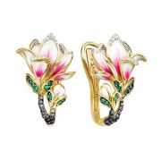 Фото «Золотые серьги БРИЛЛИАНТЫ КОСТРОМЫ 02-2427. c эмалью, бриллиантом, кварцем»