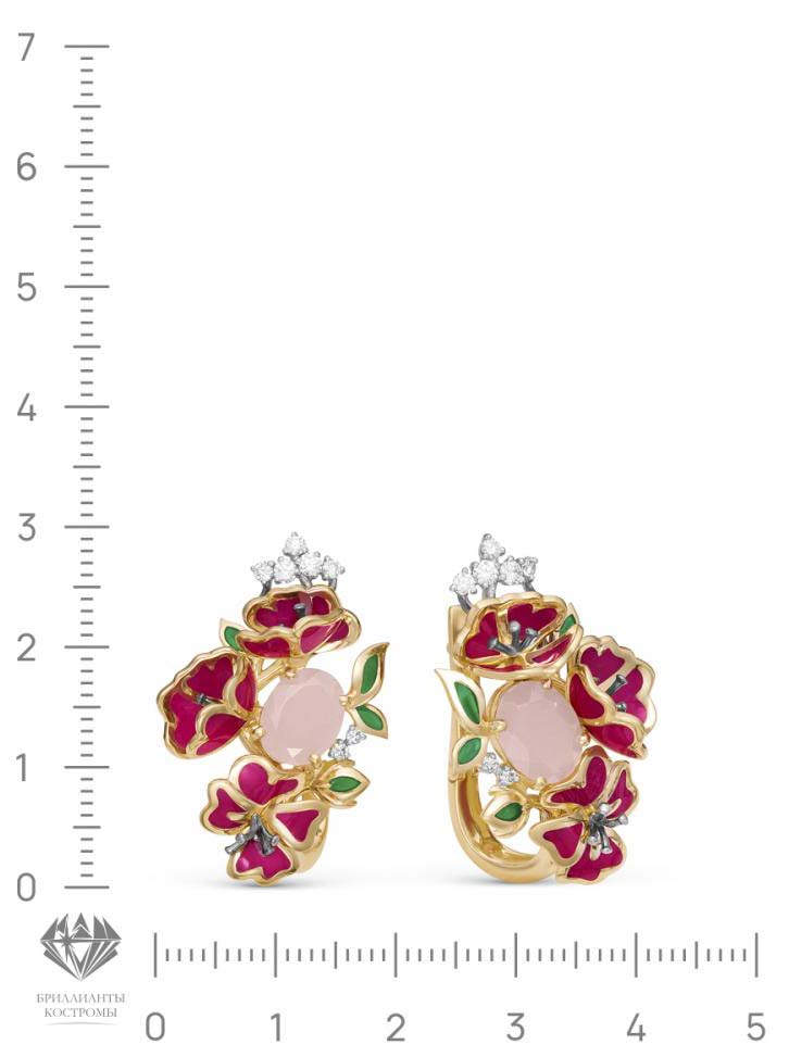 Фото «Золотые серьги БРИЛЛИАНТЫ КОСТРОМЫ 02-2427. c эмалью, бриллиантом, кварцем»