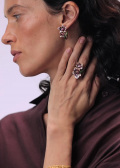 Фото «Золотые серьги ''Орхидея'' БРИЛЛИАНТЫ КОСТРОМЫ 02-2798. с эмалью, родолитами, тсаворитами»