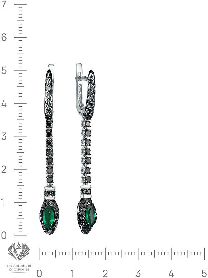 Фото «Золотые серьги с подвесками ''Змеи'' БРИЛЛИАНТЫ КОСТРОМЫ 02-4392/1 с изумрудами, коньячными бриллиантами»