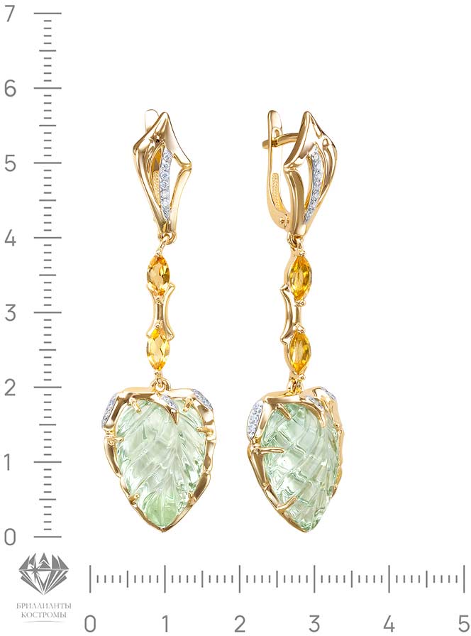 Фото «Золотые серьги с подвесками ''Листья'' БРИЛЛИАНТЫ КОСТРОМЫ 02-4922. с кварцем, цитринами, бриллиантами»