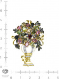 Золотая брошь ''Ваза с цветами'' БРИЛЛИАНТЫ КОСТРОМЫ 05-0090 с эмалью, турмалинами, голубыми сапфирами, бриллиантами, зелеными бриллиантами, тсаворитами