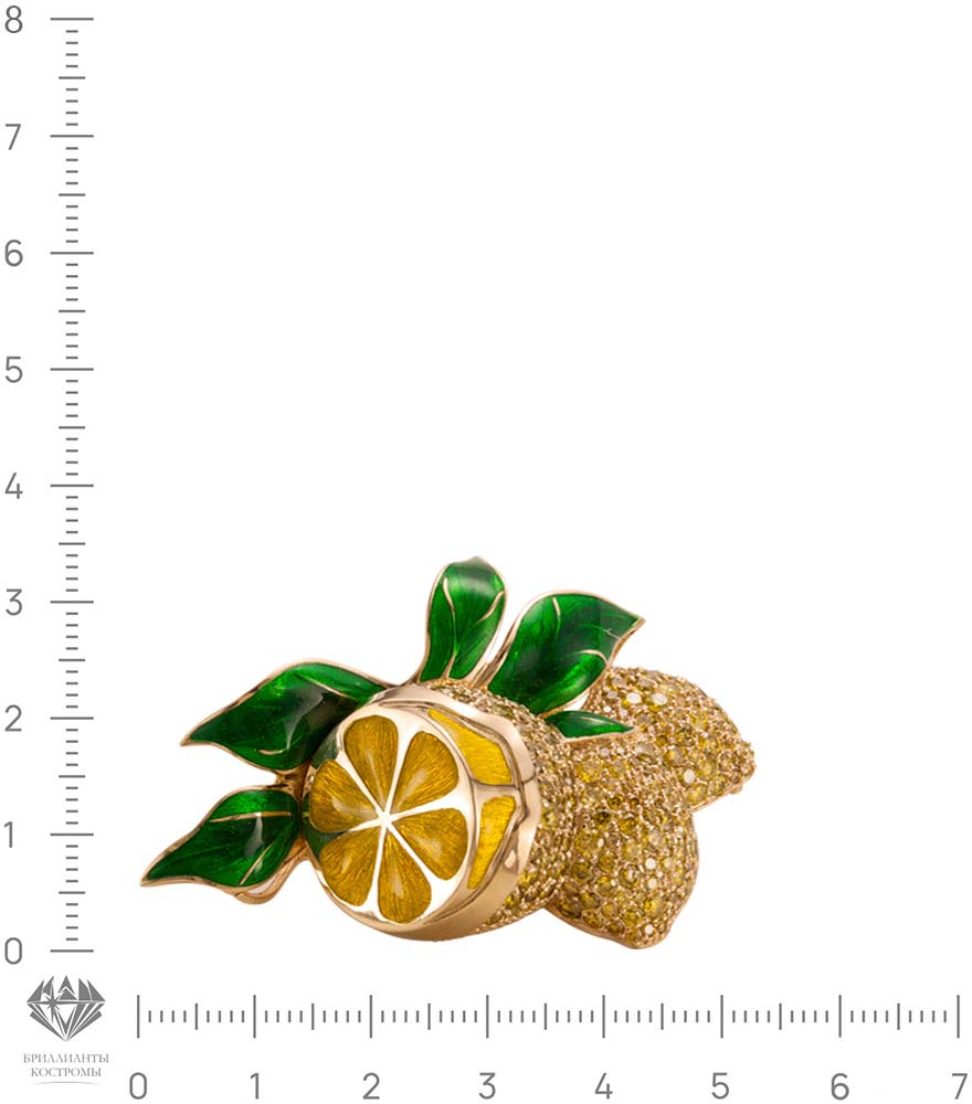 Фото «Золотая брошь ''Лимоны'' БРИЛЛИАНТЫ КОСТРОМЫ 05-0106 с эмалью, желтыми бриллиантами»