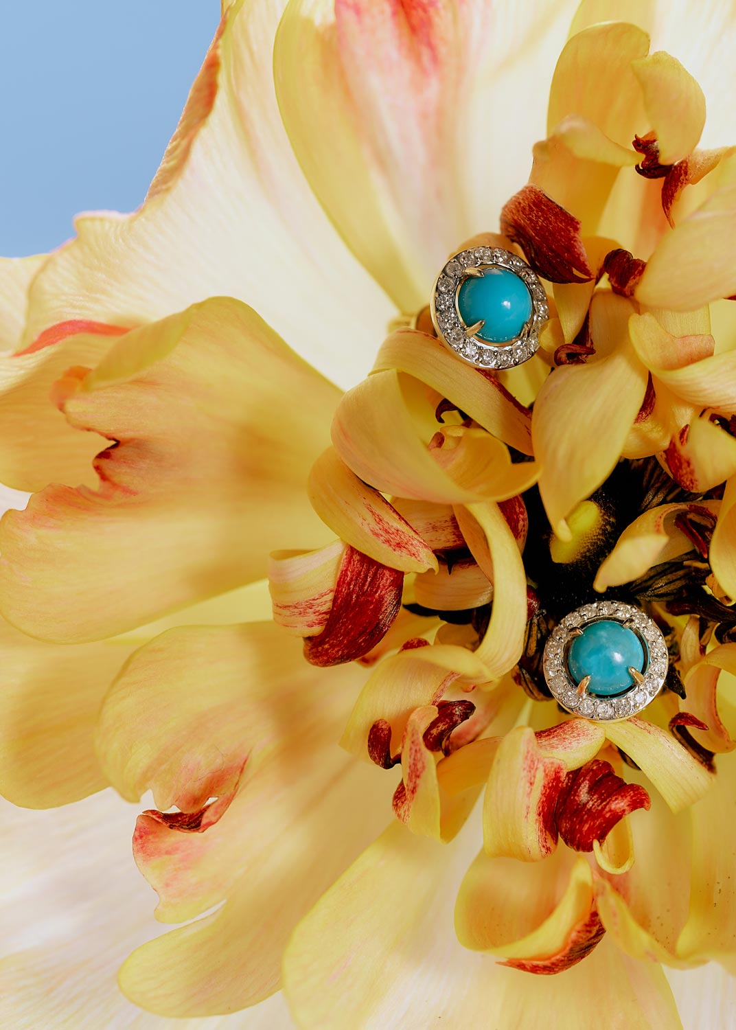 - бирюза - 1,050К, бриллиант в 57 граней - 36шт. - 0,173К, чистота камня 3/5А (цвет, качество)
