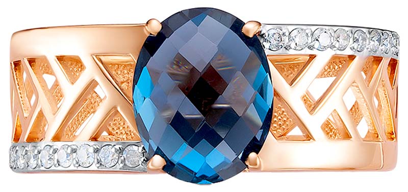 Золотое кольцо БРИЛЛИАНТЫ КОСТРОМЫ 1K01-4321/5-01.01KR45.22OV с Лондон топазом, бриллиантами