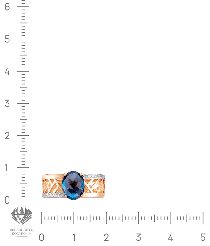Фото «Золотое кольцо БРИЛЛИАНТЫ КОСТРОМЫ 1K01-4321/5-01.01KR45.22OV с Лондон топазом, бриллиантами»