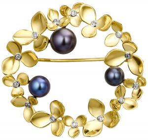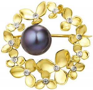 - желтое золото, бриллиант, натуральный жемчуг, жемчуг, вес: 7,57г.