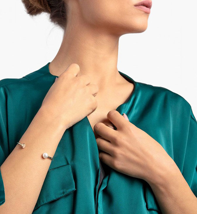 Фото «Стальной жесткий браслет Calvin Klein KJ9RJF14010S с жемчугом»
