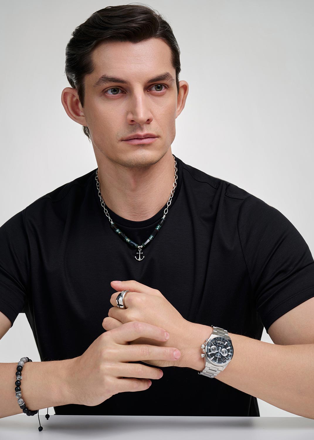 Фото «Мужской браслет из бусин ''Череп'' Carpe Diem S029804B с агатами, лабрадоритом»