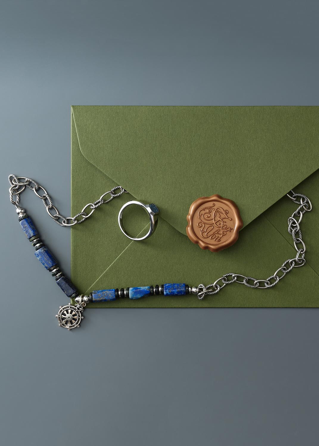 Фото «Мужская серебряная подвеска на цепочке ''Штурвал'' Carpe Diem S030802N-1 с лазуритом, яшмой»