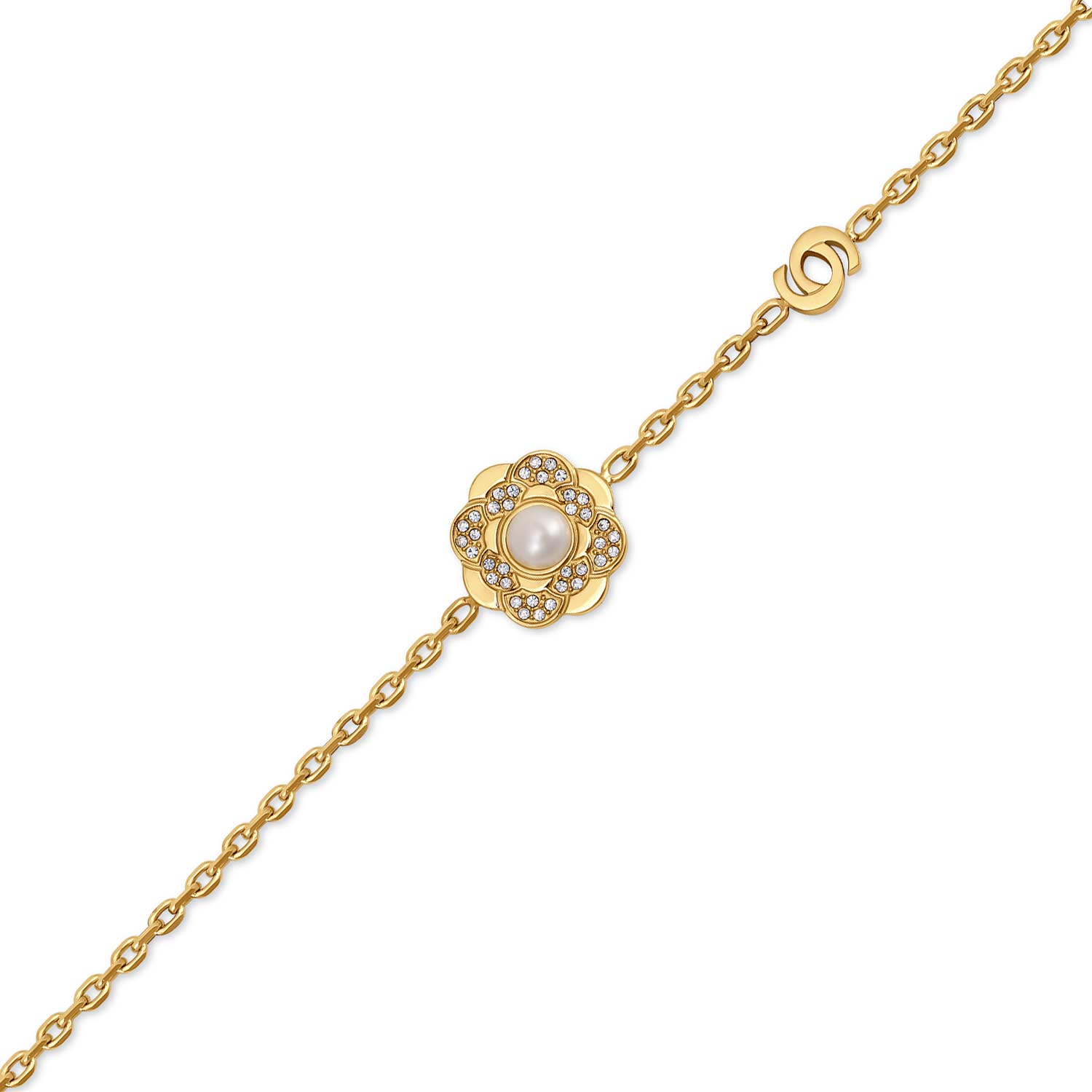 Фото «Стальной браслет цепь Cerruti 1881 CIJLB0013901 с искусственным жемчугом, кристаллами»