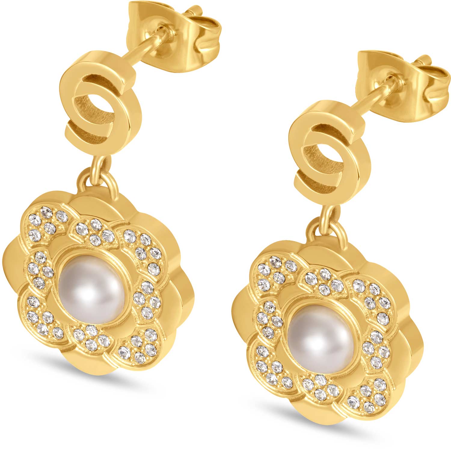 Стальные серьги с подвесками Cerruti 1881 CIJLE0013901 с искусственным жемчугом, кристаллами