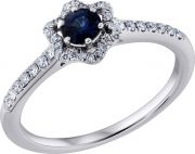 - сапфир - 0,03К, чистота камня 3/Г2 (цвет, качество), бриллиант - 38шт. в 57 граней - 0,019К, чистота камня 3/5 (цвет, качество)