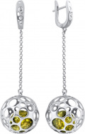 Фото «Серебряные длинные серьги шарики Darvin 429396440GS с янтарем»